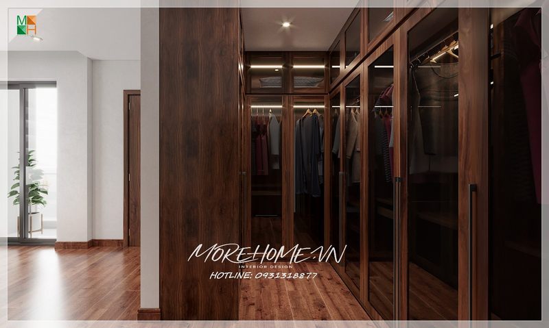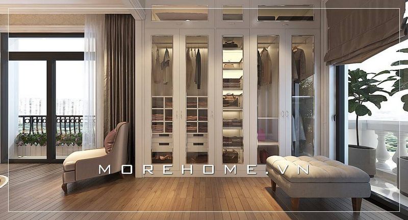 Nội thất của căn hộ cao cấp, biệt thự, nhà phố có khu để đồ tiện lợi với hệ thống tủ quần áo kịch trần cánh kính sang trọng