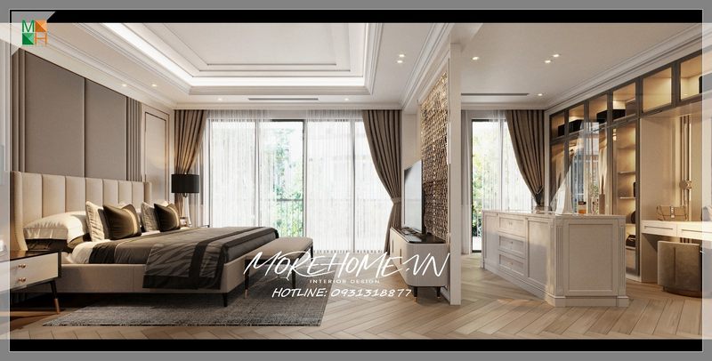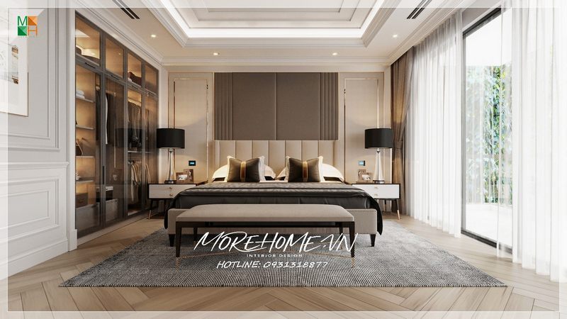 Giường ngủ đẹp, sang trọng ấn tượng với nệm bọc đầu giường êm ái tạo điểm nhấn độc đáo cho phòng ngủ.