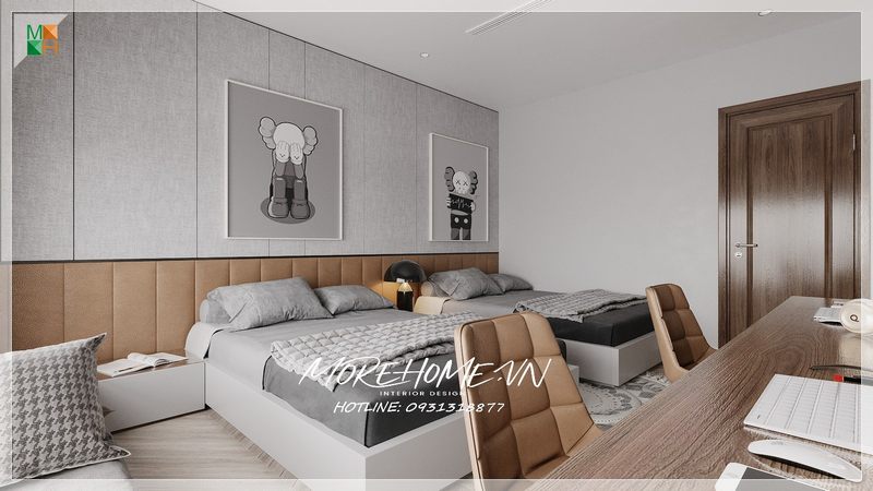 Đầu giường được bọc nệm đảm bảo sự an toàn khi ngủ trẻ và mang lại thẩm mỹ cao cho căn phòng.