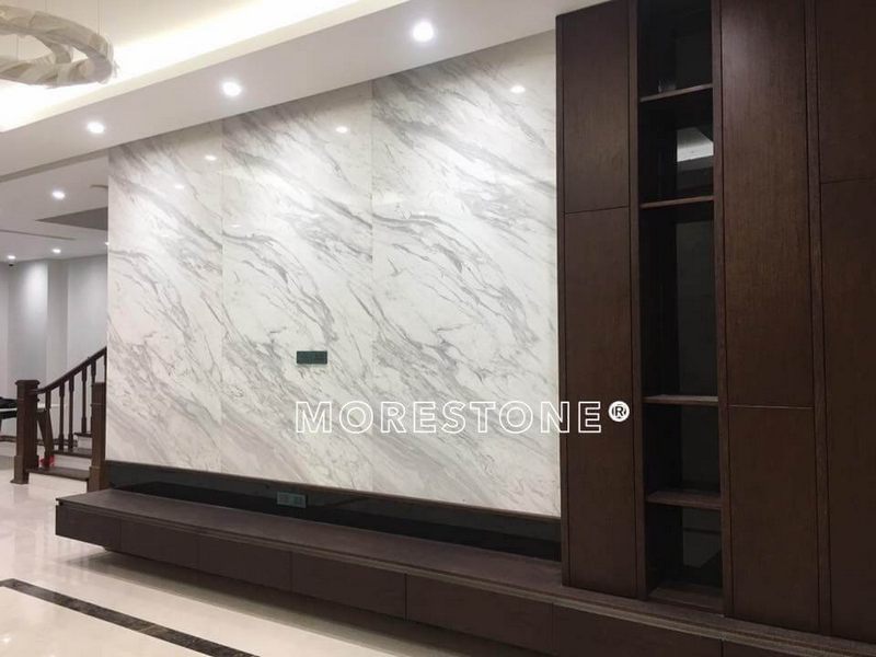 Với sự đẹp độc đáo và trẻ trung, đá ốp tường phòng khách màu trắng tự nhiên nhấn những đường vân sinh động đã trở thành xu hướng được nhiều gia chủ ưa chuộng để trang trí ngôi nhà của họ.